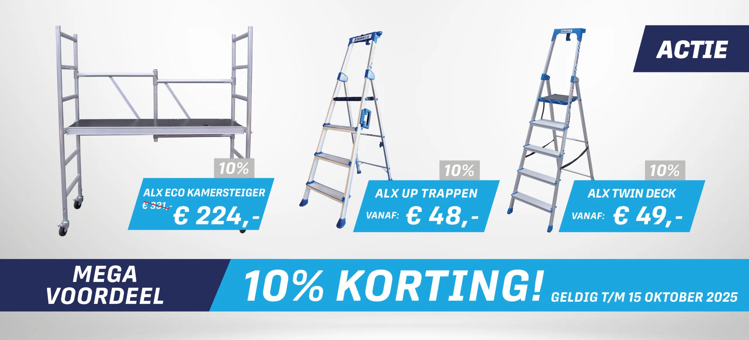 Dit systeem is in het bijzonder geschikt om op lagere hoogtes veilig te werken. Denk aan schilder- of stucwerkzaamheden in een woonkamer, keuken of welkomsthal. Kamersteigers zijn makkelijk in elkaar te zetten en zeer compact, waardoor ze ideaal zijn voor gebruik in kleine of lastig bereikbare ruimtes. Dankzij het lichte gewicht zijn ze eenvoudig te verplaatsen, zelfs door smalle deuropeningen of trappenhuizen. Het werkplatform biedt voldoende ruimte voor gereedschap en materiaal, zodat u efficiënt kunt doorwerken zonder telkens op en af te hoeven stappen. Een kamersteiger is dan ook een onmisbaar hulpmiddel voor elke klusser die binnenshuis veilig op hoogte wil werken.