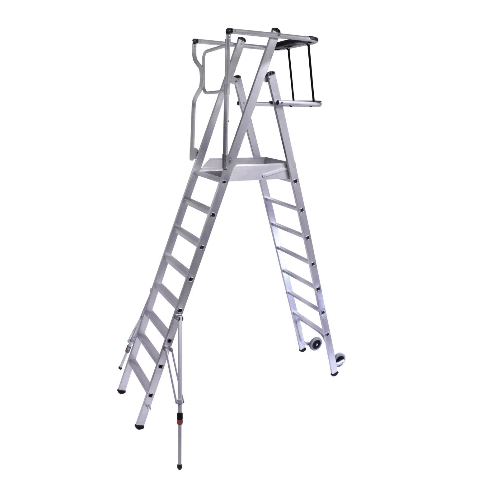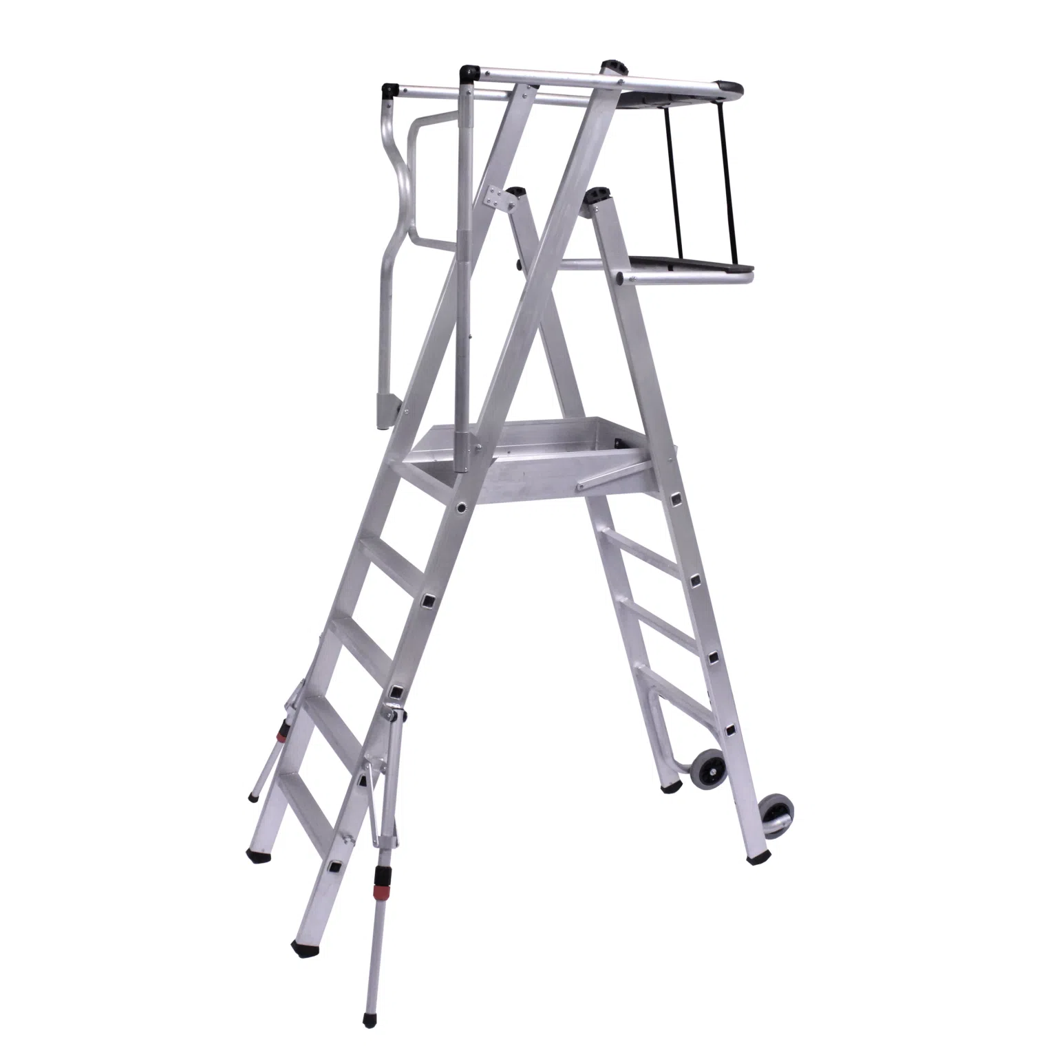 * Grote treden van 60 mm en een werk platform van 455×600 mm, hoogte leuning 105 mm.