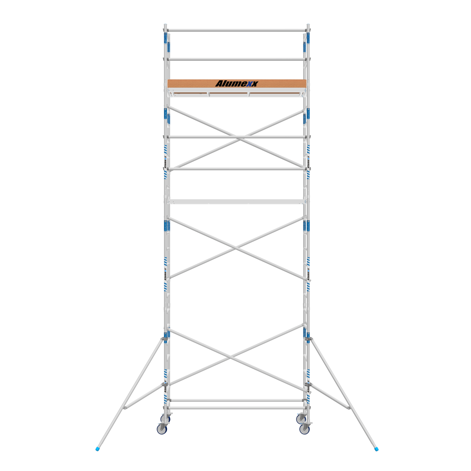 De onderdelen van deze ALX-rolsteiger voldoen aan de strengste eisen en zijn TUV-gecertificeerd. Deze uitgeklede versie qua onderdelen vindt u op verschillende websites. deze voldoet echter niet aan de (te strenge) professionele opbouwnorm EN1004. Toch is deze configuratie ideaal voor werkzaamheden in en rondom het huis. Extra onderdelen om te voldoen aan de EN1004-norm kunt u hier bestellen: Steigermateriaal.