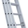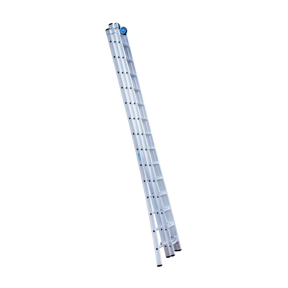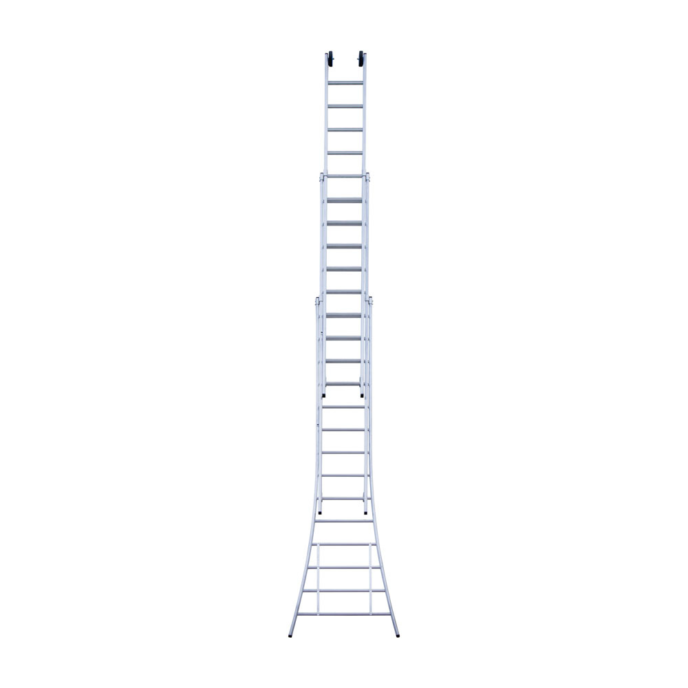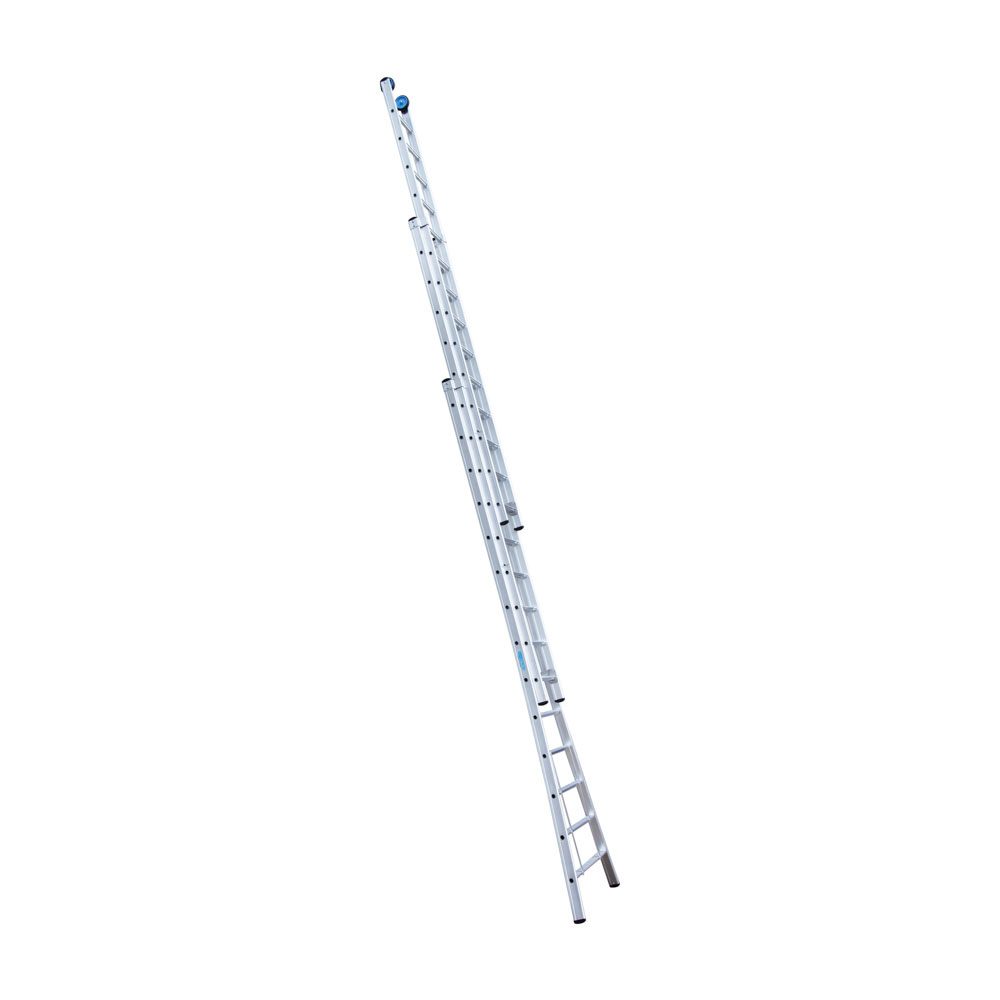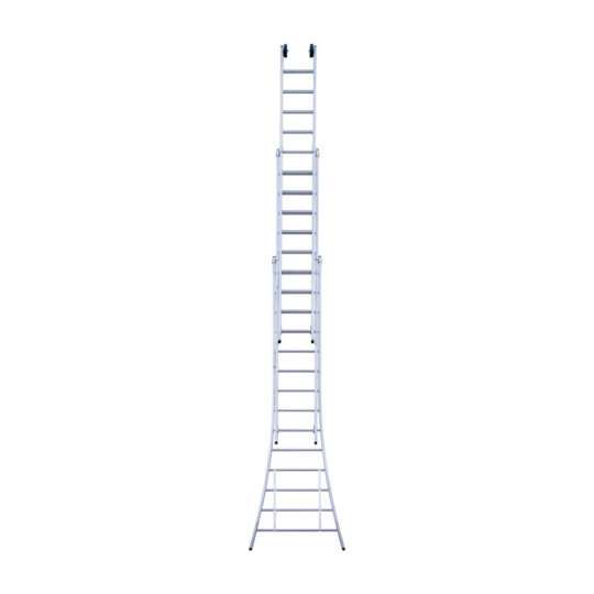Deze driedelige multifunctionele Opsteek ladder met 3×14 treden (sporten) is ideaal voor werkzaamheden op wisselende hoogtes. Ingeschoven heeft de ladder een lengte van 3,75 meter en uitgeschoven maximaal 9 meter, met een maximale werkhoogte van 10 meter. De lichtgewicht ladder is gemaakt van geanodiseerd aluminium, waardoor deze niet afgeeft en een langere levensduur heeft. De Opsteek ladder is daarnaast voorzien van extra versterkingspunten, brede treden van 4 cm, antislipdoppen en gevelrollen. Goedgekeurd volgens de Europese wetgeving EN131 en geschikt voor geschikt voor intensief gebruik gebruik. Ideaal voor aannemers, schilders en doe-het-zelf gebruikers.