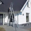 Duurzame driedelige reformladder met 3×8 treden van 4 cm breed. De ladder kan snel en moeiteloos in A-stand worden uitgeschoven en hoeft niet tegen een gevel of muur te leunen. De aluminium ladder is licht van gewicht, waardoor deze gemakkelijk te hanteren en te verplaatsen is. Ingeschoven heeft de 3-delige ladder een lengte van 2,25 meter en uitgeschoven maximaal 4,75 meter. Voor de veiligheid zijn de reformladders van Eurostairs uitgerust met extra versterkingspunten en antislipdoppen, en daardoor geschikt voor werkzaamheden binnen en buiten. De ladder is goedgekeurd volgens de Europese wetgeving EN131.