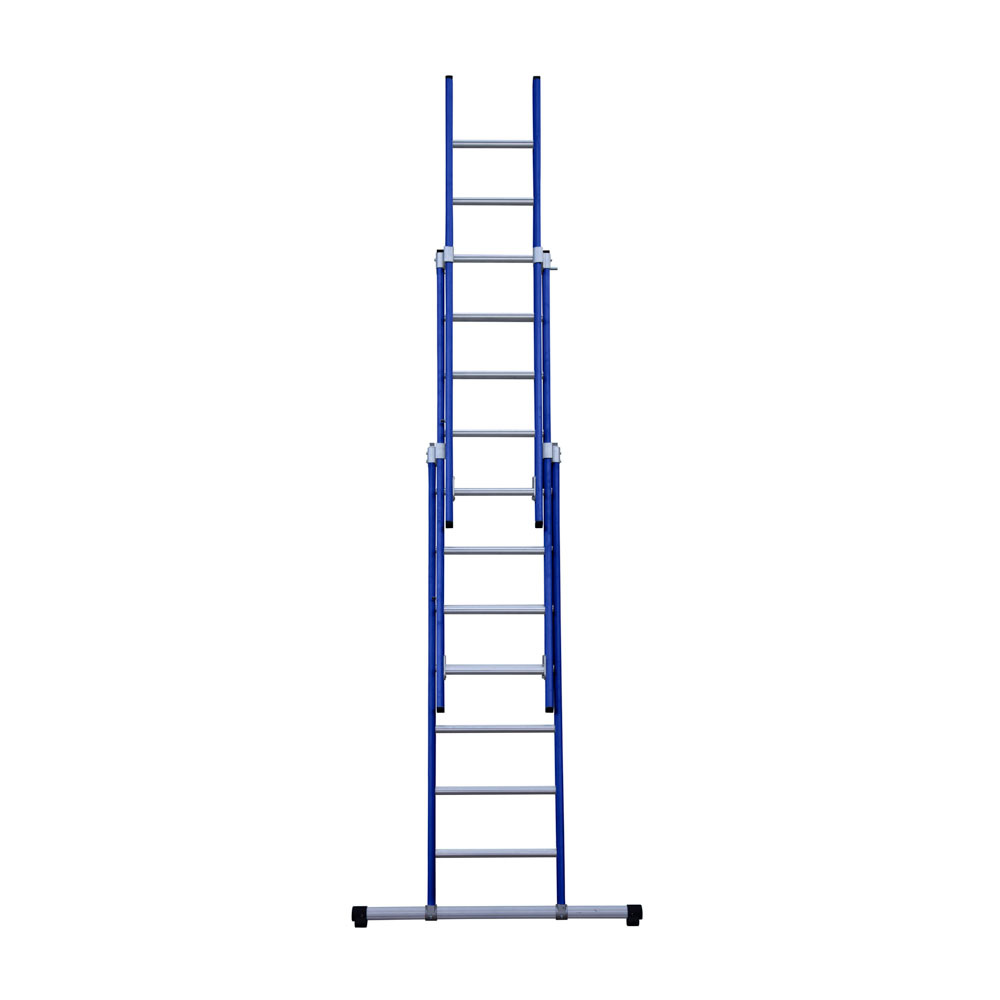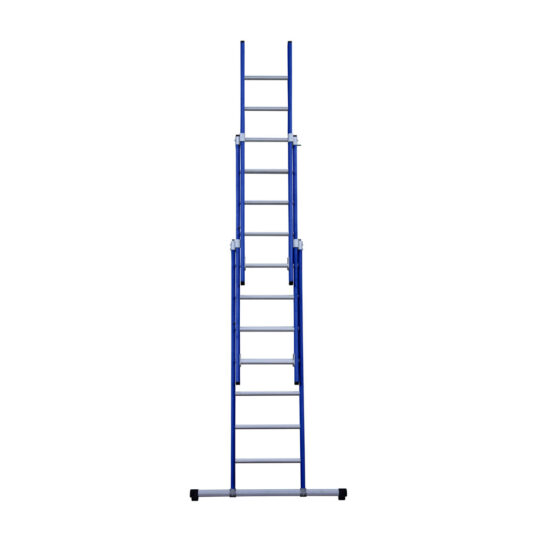 Ladder driedubbel BLAUW 3×7 recht Ideaal voor aannemers, schilders en doe-het-zelf gebruikers.