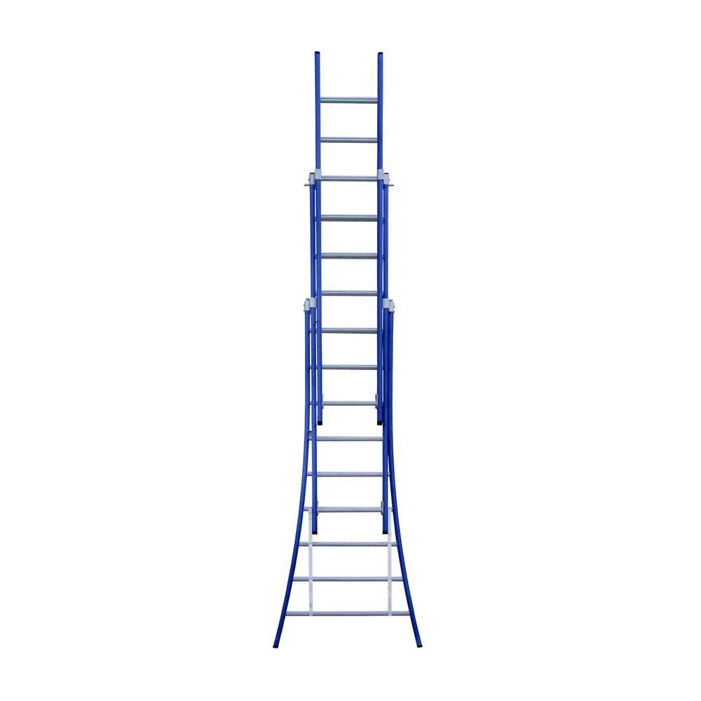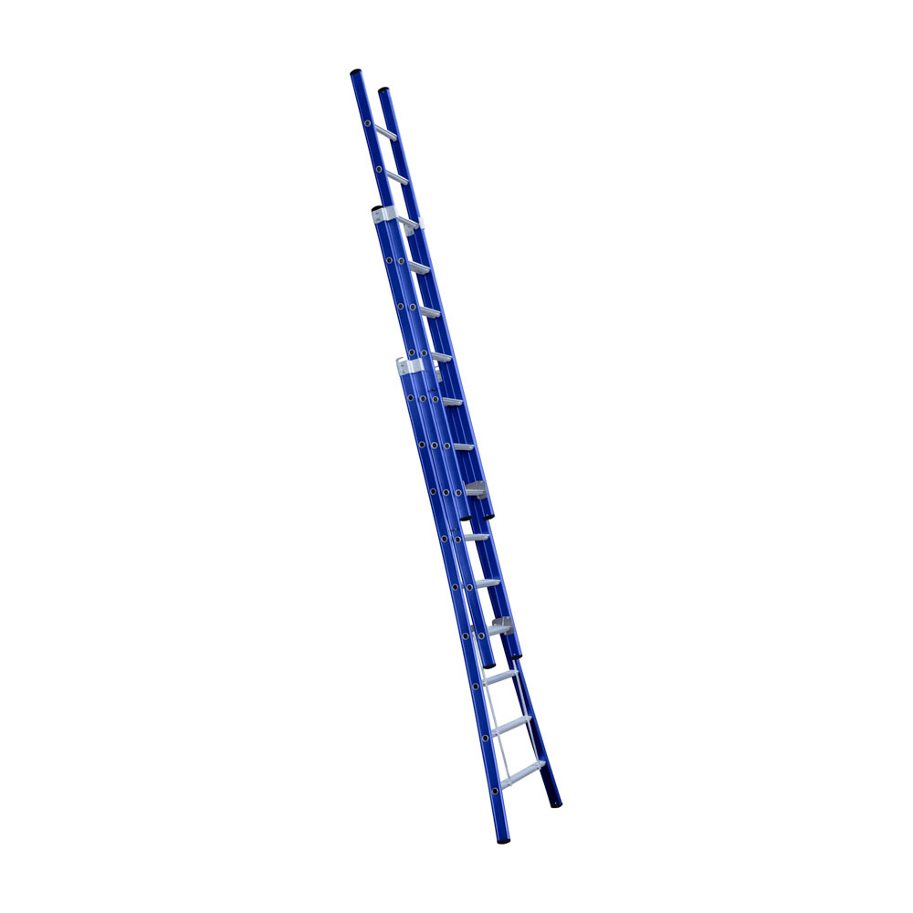 Ladder driedubbel BLAUW 3×9 uitgebogen Ideaal voor aannemers, schilders en doe-het-zelf gebruikers.