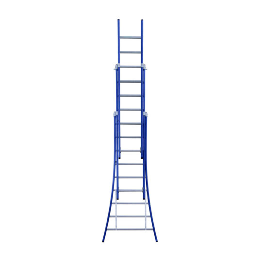 Upgrade met Ladder driedubbel BLAUW 3×9 uitgebogen: lichtgewicht aluminium, robuust en gecertificeerd. Ideaal voor aannemers, schilders en doe-het-zelf gebruikers.