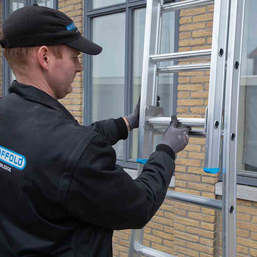 2-delige alumium ladder van Eurostairs Speciaal ontwikkeld voor optimale stabiliteit op hoogte.