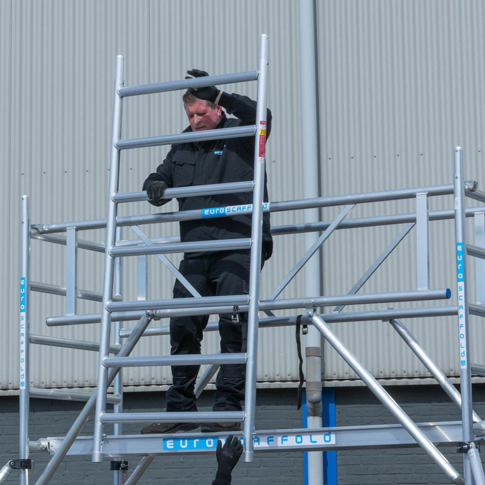 De Euroscaffold BASIC is een scherp geprijsde mobiele steiger, voorzien van een AGS-PRO voorloopleuning, ideaal ten behoeve van toepassing bij de gevel. De aangepaste samenstelling maakt deze Euroscaffold zeer betaalbaar. De toegevoegde AGS-PRO voorloopleuning zorgt ten behoeve van een veilige montage en demontage.