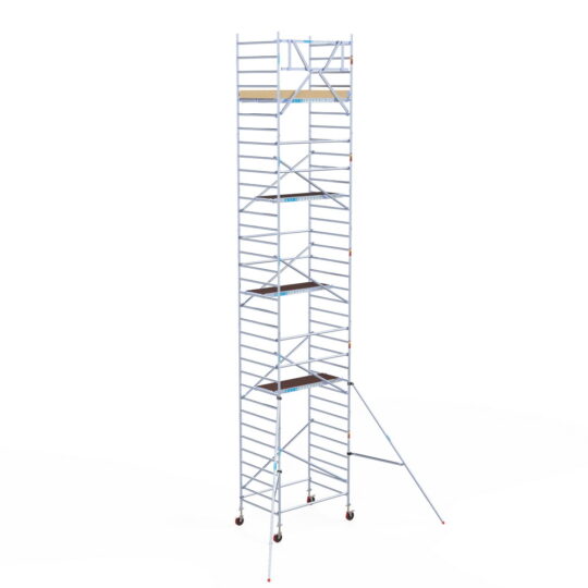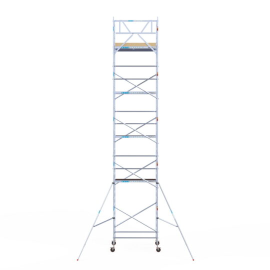 190 cm: Dit is de kleinste standaardmaat voor rolsteigers. Uitzonderingen zijn extra compacte kamersteigers of 1-persoonssteigers, die vaak platformlengtes van 120, 140 of 165 cm hebben. De 190 cm-variant wordt veel gebruikt bij kamersteigers en biedt voldoende ruimte om alleen comfortabel te werken.