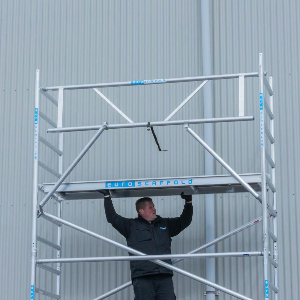 De Euroscaffold BASIC is een scherp geprijsde rolsteiger, voorzien van een AGS-PRO voorloopleuning, ideaal bij toepassing bij de gevel. De aangepaste samenstelling maakt deze Euroscaffold zeer betaalbaar. De toegevoegde AGS-PRO voorloopleuning zorgt bij een veilige montage en demontage.
