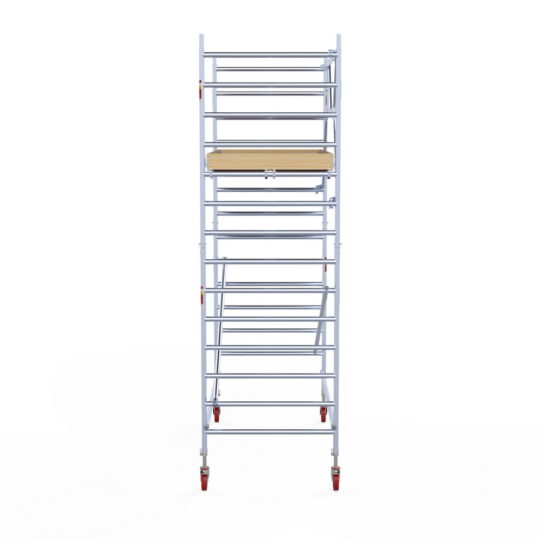 . Deze rolsteiger is voorzien van een houten kantplankenset en uitstekende in hoogte verstelbare wielen. Voor 12.00 besteld is de volgende werkdag geleverd.