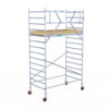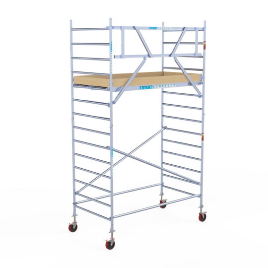 190 cm: Dit is de kleinste standaardmaat voor rolsteigers. Uitzonderingen zijn extra compacte kamersteigers of 1-persoonssteigers, die vaak platformlengtes van 120, 140 of 165 cm hebben. De 190 cm-variant wordt veel gebruikt bij kamersteigers en biedt voldoende ruimte om alleen comfortabel te werken.