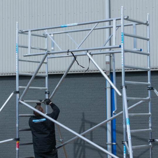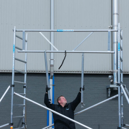 De Euroscaffold BASIC is een scherp geprijsde rolsteiger, voorzien van een AGS-PRO voorloopleuning, perfect voor voor inzet bij de gevel. De aangepaste samenstelling maakt deze Euroscaffold zeer betaalbaar. De toegevoegde AGS-PRO voorloopleuning zorgt voor een veilige montage en demontage.