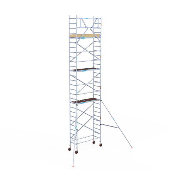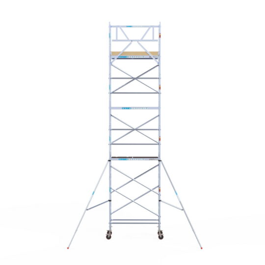 190 cm: Dit is de kleinste standaardmaat voor rolsteigers. Uitzonderingen zijn extra compacte kamersteigers of 1-persoonssteigers, die vaak platformlengtes van 120, 140 of 165 cm hebben. De 190 cm-variant wordt veel gebruikt bij kamersteigers en biedt voldoende ruimte om alleen comfortabel te werken.