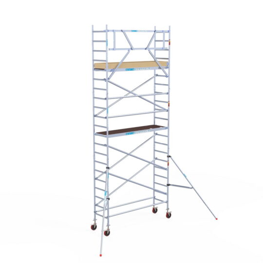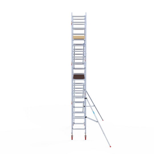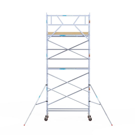 190 cm: Dit is de kleinste standaardmaat voor rolsteigers. Uitzonderingen zijn extra compacte kamersteigers of 1-persoonssteigers, die vaak platformlengtes van 120, 140 of 165 cm hebben. De 190 cm-variant wordt veel gebruikt bij kamersteigers en biedt voldoende ruimte om alleen comfortabel te werken.