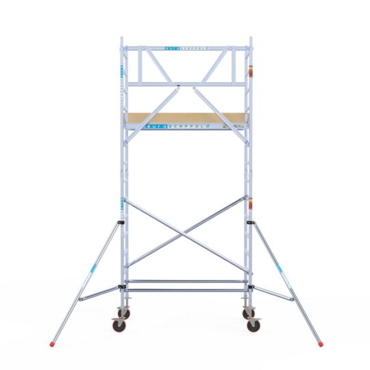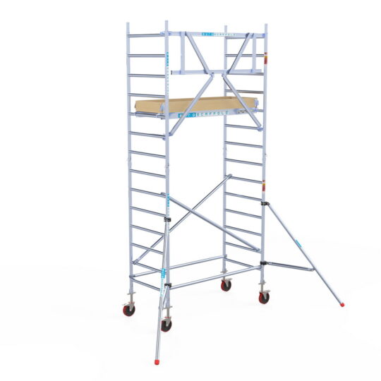 190 cm: Dit is de kleinste standaardmaat voor rolsteigers. Uitzonderingen zijn extra compacte kamersteigers of 1-persoonssteigers, die vaak platformlengtes van 120, 140 of 165 cm hebben. De 190 cm-variant wordt veel gebruikt bij kamersteigers en biedt voldoende ruimte om alleen comfortabel te werken.