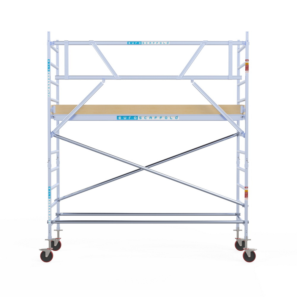 De Euroscaffold BASIC is een scherp geprijsde rolsteiger, voorzien van een AGS-PRO voorloopleuning, geschikt ten behoeve van inzet bij de gevel. De aangepaste samenstelling maakt deze Euroscaffold zeer betaalbaar. De toegevoegde AGS-PRO voorloopleuning zorgt ten behoeve van een veilige montage en demontage.
