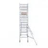 190 cm: Dit is de kleinste standaardmaat voor rolsteigers. Uitzonderingen zijn extra compacte kamersteigers of 1-persoonssteigers, die vaak platformlengtes van 120, 140 of 165 cm hebben. De 190 cm-variant wordt veel gebruikt bij kamersteigers en biedt voldoende ruimte om alleen comfortabel te werken.