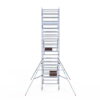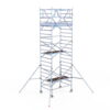 190 cm: Dit is de kleinste standaardmaat voor rolsteigers. Uitzonderingen zijn extra compacte kamersteigers of 1-persoonssteigers, die vaak platformlengtes van 120, 140 of 165 cm hebben. De 190 cm-variant wordt veel gebruikt bij kamersteigers en biedt voldoende ruimte om alleen comfortabel te werken.