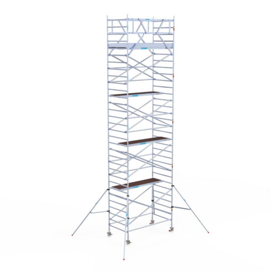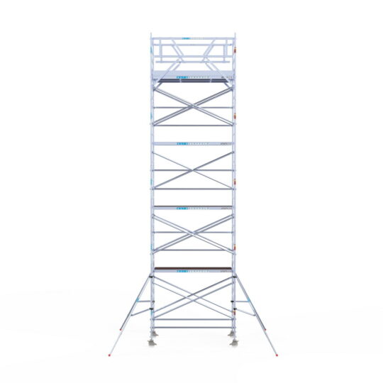 190 cm: Dit is de kleinste standaardmaat voor rolsteigers. Uitzonderingen zijn extra compacte kamersteigers of 1-persoonssteigers, die vaak platformlengtes van 120, 140 of 165 cm hebben. De 190 cm-variant wordt veel gebruikt bij kamersteigers en biedt voldoende ruimte om alleen comfortabel te werken.