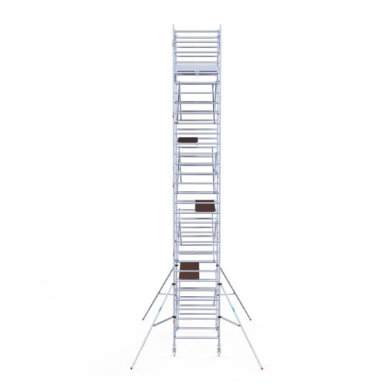 305 cm: Dit is, naast de zeldzame 400 cm-variant, de grootste standaardmaat. Deze lengte is ideaal als je de steiger regelmatig moet verplaatsen, omdat je met een langer platform minder vaak hoeft te herpositioneren. Deze platformlengte is zwaar, wij adviseren hier altijd voor carbon te kiezen.