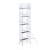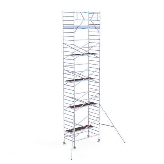 190 cm: Dit is de kleinste standaardmaat voor rolsteigers. Uitzonderingen zijn extra compacte kamersteigers of 1-persoonssteigers, die vaak platformlengtes van 120, 140 of 165 cm hebben. De 190 cm-variant wordt veel gebruikt bij kamersteigers en biedt voldoende ruimte om alleen comfortabel te werken.