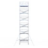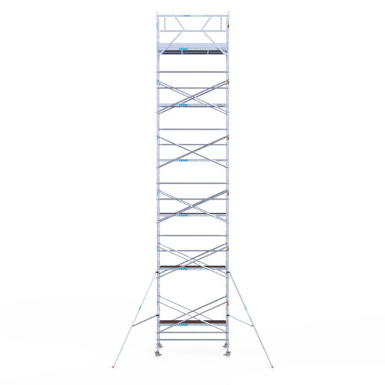190 cm: Dit is de kleinste standaardmaat voor rolsteigers. Uitzonderingen zijn extra compacte kamersteigers of 1-persoonssteigers, die vaak platformlengtes van 120, 140 of 165 cm hebben. De 190 cm-variant wordt veel gebruikt bij kamersteigers en biedt voldoende ruimte om alleen comfortabel te werken.