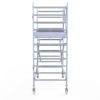 190 cm: Dit is de kleinste standaardmaat voor rolsteigers. Uitzonderingen zijn extra compacte kamersteigers of 1-persoonssteigers, die vaak platformlengtes van 120, 140 of 165 cm hebben. De 190 cm-variant wordt veel gebruikt bij kamersteigers en biedt voldoende ruimte om alleen comfortabel te werken.