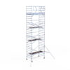 190 cm: Dit is de kleinste standaardmaat voor rolsteigers. Uitzonderingen zijn extra compacte kamersteigers of 1-persoonssteigers, die vaak platformlengtes van 120, 140 of 165 cm hebben. De 190 cm-variant wordt veel gebruikt bij kamersteigers en biedt voldoende ruimte om alleen comfortabel te werken.