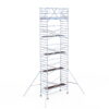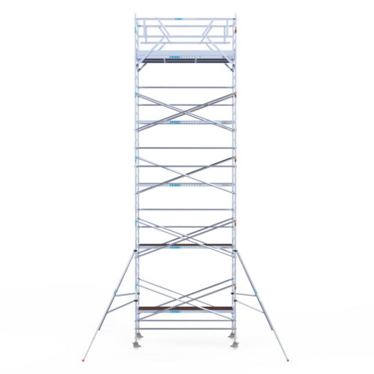 190 cm: Dit is de kleinste standaardmaat voor rolsteigers. Uitzonderingen zijn extra compacte kamersteigers of 1-persoonssteigers, die vaak platformlengtes van 120, 140 of 165 cm hebben. De 190 cm-variant wordt veel gebruikt bij kamersteigers en biedt voldoende ruimte om alleen comfortabel te werken.