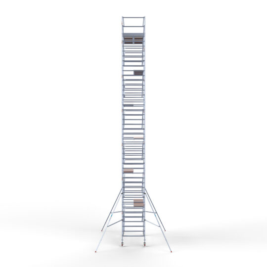 305 cm: Dit is, naast de zeldzame 400 cm-variant, de grootste standaardmaat. Deze lengte is ideaal als je de steiger regelmatig moet verplaatsen, omdat je met een langer platform minder vaak hoeft te herpositioneren. Deze platformlengte is zwaar, wij adviseren hier altijd voor carbon te kiezen.