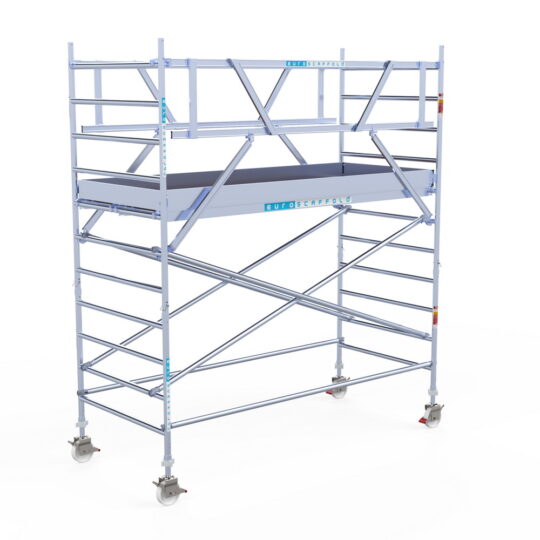 De Original mobiele steiger van Euroscaffold is een werksteiger samengesteld met inzet van schoren en op de bovenste etage voorloopleuningen. Wij bieden de Original aan in uitvoeringen voor gebruik bij een gevel (één voorloopleunging en in vrijstaande uitvoeringen (twee voorloopleuningen) conform de  Daarmee ben je snel aan de slag.EN1004. Daarmee ben je snel aan de slag..