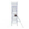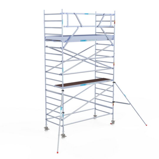 190 cm: Dit is de kleinste standaardmaat voor rolsteigers. Uitzonderingen zijn extra compacte kamersteigers of 1-persoonssteigers, die vaak platformlengtes van 120, 140 of 165 cm hebben. De 190 cm-variant wordt veel gebruikt bij kamersteigers en biedt voldoende ruimte om alleen comfortabel te werken.