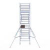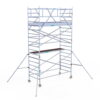 190 cm: Dit is de kleinste standaardmaat voor rolsteigers. Uitzonderingen zijn extra compacte kamersteigers of 1-persoonssteigers, die vaak platformlengtes van 120, 140 of 165 cm hebben. De 190 cm-variant wordt veel gebruikt bij kamersteigers en biedt voldoende ruimte om alleen comfortabel te werken.