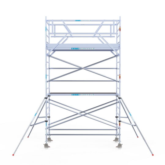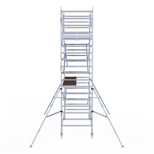 190 cm: Dit is de kleinste standaardmaat voor rolsteigers. Uitzonderingen zijn extra compacte kamersteigers of 1-persoonssteigers, die vaak platformlengtes van 120, 140 of 165 cm hebben. De 190 cm-variant wordt veel gebruikt bij kamersteigers en biedt voldoende ruimte om alleen comfortabel te werken.