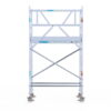 190 cm: Dit is de kleinste standaardmaat voor rolsteigers. Uitzonderingen zijn extra compacte kamersteigers of 1-persoonssteigers, die vaak platformlengtes van 120, 140 of 165 cm hebben. De 190 cm-variant wordt veel gebruikt bij kamersteigers en biedt voldoende ruimte om alleen comfortabel te werken.