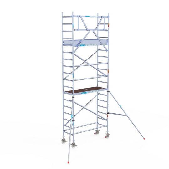 190 cm: Dit is de kleinste standaardmaat voor rolsteigers. Uitzonderingen zijn extra compacte kamersteigers of 1-persoonssteigers, die vaak platformlengtes van 120, 140 of 165 cm hebben. De 190 cm-variant wordt veel gebruikt bij kamersteigers en biedt voldoende ruimte om alleen comfortabel te werken.
