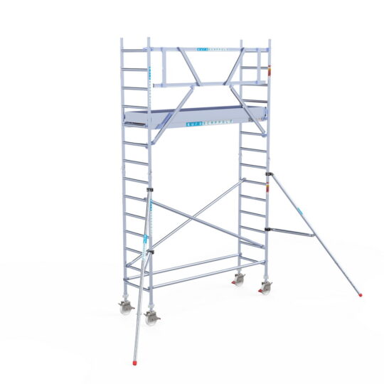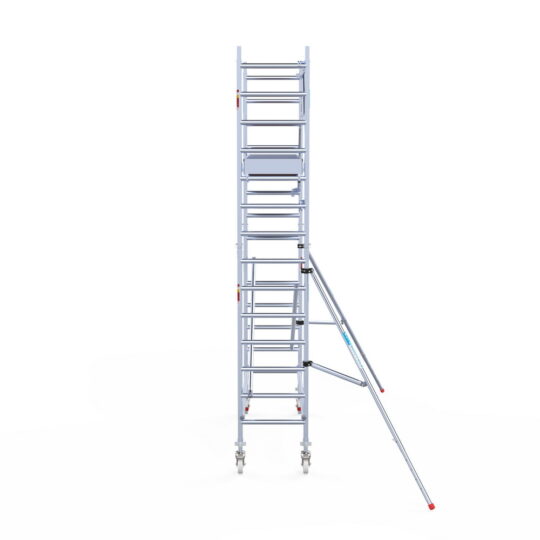 190 cm: Dit is de kleinste standaardmaat voor rolsteigers. Uitzonderingen zijn extra compacte kamersteigers of 1-persoonssteigers, die vaak platformlengtes van 120, 140 of 165 cm hebben. De 190 cm-variant wordt veel gebruikt bij kamersteigers en biedt voldoende ruimte om alleen comfortabel te werken.