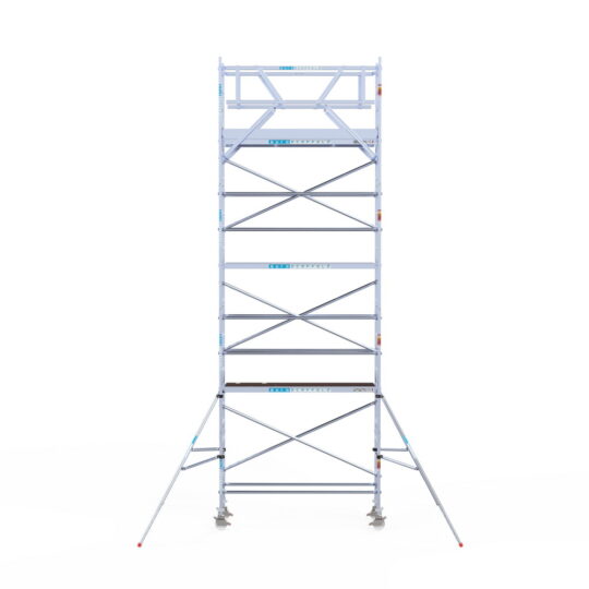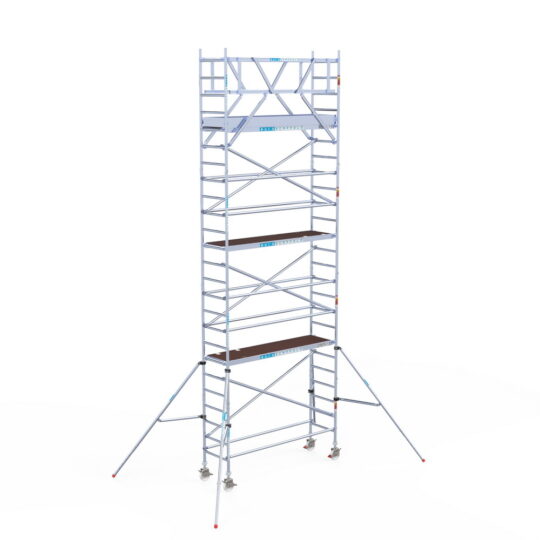 190 cm: Dit is de kleinste standaardmaat voor rolsteigers. Uitzonderingen zijn extra compacte kamersteigers of 1-persoonssteigers, die vaak platformlengtes van 120, 140 of 165 cm hebben. De 190 cm-variant wordt veel gebruikt bij kamersteigers en biedt voldoende ruimte om alleen comfortabel te werken.