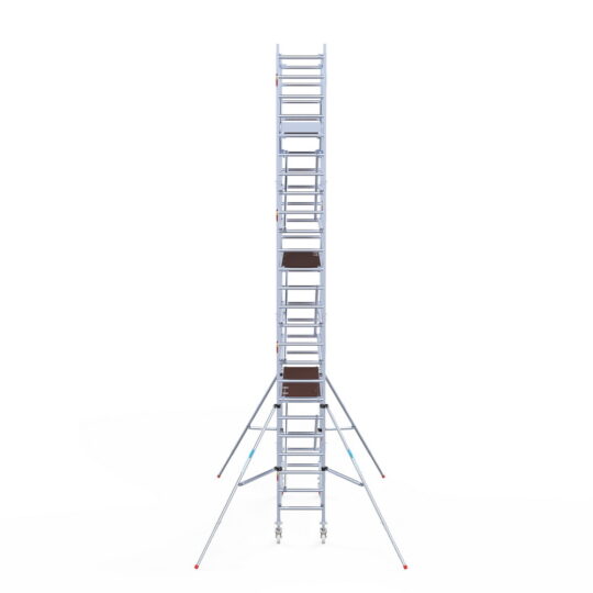 305 cm: Dit is, naast de zeldzame 400 cm-variant, de grootste standaardmaat. Deze lengte is ideaal als je de steiger regelmatig moet verplaatsen, omdat je met een langer platform minder vaak hoeft te herpositioneren. Deze platformlengte is zwaar, wij adviseren hier altijd voor carbon te kiezen.