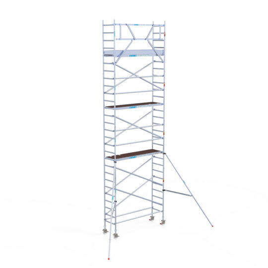 190 cm: Dit is de kleinste standaardmaat voor rolsteigers. Uitzonderingen zijn extra compacte kamersteigers of 1-persoonssteigers, die vaak platformlengtes van 120, 140 of 165 cm hebben. De 190 cm-variant wordt veel gebruikt bij kamersteigers en biedt voldoende ruimte om alleen comfortabel te werken.