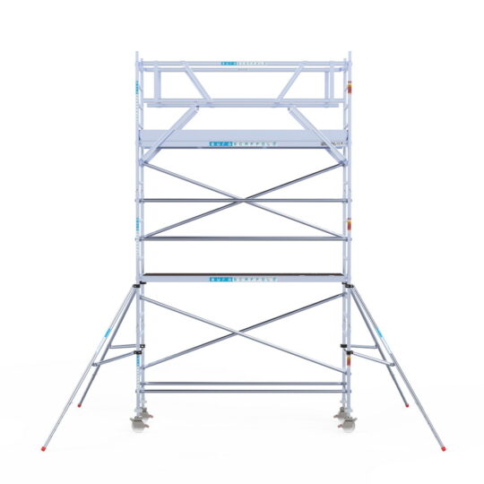 190 cm: Dit is de kleinste standaardmaat voor rolsteigers. Uitzonderingen zijn extra compacte kamersteigers of 1-persoonssteigers, die vaak platformlengtes van 120, 140 of 165 cm hebben. De 190 cm-variant wordt veel gebruikt bij kamersteigers en biedt voldoende ruimte om alleen comfortabel te werken.