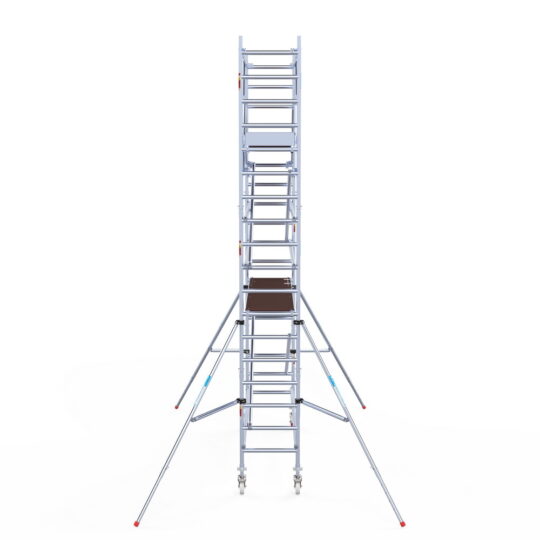 305 cm: Dit is, naast de zeldzame 400 cm-variant, de grootste standaardmaat. Deze lengte is ideaal als je de steiger regelmatig moet verplaatsen, omdat je met een langer platform minder vaak hoeft te herpositioneren. Deze platformlengte is zwaar, wij adviseren hier altijd voor carbon te kiezen.