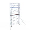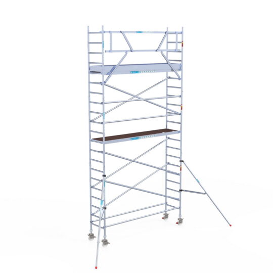 190 cm: Dit is de kleinste standaardmaat voor rolsteigers. Uitzonderingen zijn extra compacte kamersteigers of 1-persoonssteigers, die vaak platformlengtes van 120, 140 of 165 cm hebben. De 190 cm-variant wordt veel gebruikt bij kamersteigers en biedt voldoende ruimte om alleen comfortabel te werken.