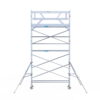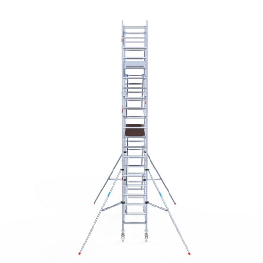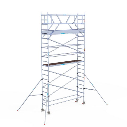 190 cm: Dit is de kleinste standaardmaat voor rolsteigers. Uitzonderingen zijn extra compacte kamersteigers of 1-persoonssteigers, die vaak platformlengtes van 120, 140 of 165 cm hebben. De 190 cm-variant wordt veel gebruikt bij kamersteigers en biedt voldoende ruimte om alleen comfortabel te werken.
