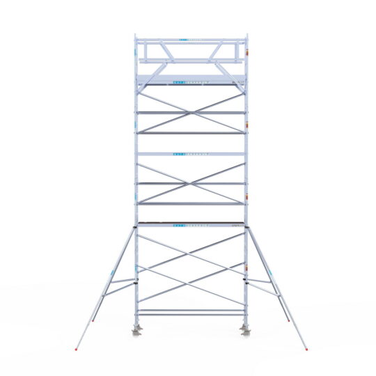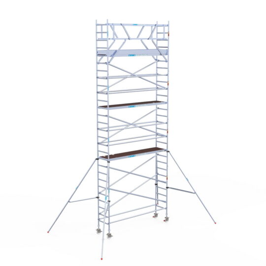 190 cm: Dit is de kleinste standaardmaat voor rolsteigers. Uitzonderingen zijn extra compacte kamersteigers of 1-persoonssteigers, die vaak platformlengtes van 120, 140 of 165 cm hebben. De 190 cm-variant wordt veel gebruikt bij kamersteigers en biedt voldoende ruimte om alleen comfortabel te werken.