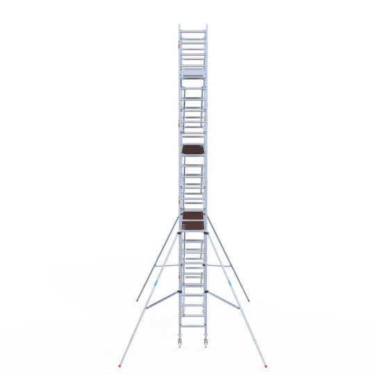 305 cm: Dit is, naast de zeldzame 400 cm-variant, de grootste standaardmaat. Deze lengte is ideaal als je de steiger regelmatig moet verplaatsen, omdat je met een langer platform minder vaak hoeft te herpositioneren. Deze platformlengte is zwaar, wij adviseren hier altijd voor carbon te kiezen.