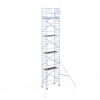 190 cm: Dit is de kleinste standaardmaat voor rolsteigers. Uitzonderingen zijn extra compacte kamersteigers of 1-persoonssteigers, die vaak platformlengtes van 120, 140 of 165 cm hebben. De 190 cm-variant wordt veel gebruikt bij kamersteigers en biedt voldoende ruimte om alleen comfortabel te werken.