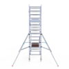 190 cm: Dit is de kleinste standaardmaat voor rolsteigers. Uitzonderingen zijn extra compacte kamersteigers of 1-persoonssteigers, die vaak platformlengtes van 120, 140 of 165 cm hebben. De 190 cm-variant wordt veel gebruikt bij kamersteigers en biedt voldoende ruimte om alleen comfortabel te werken.