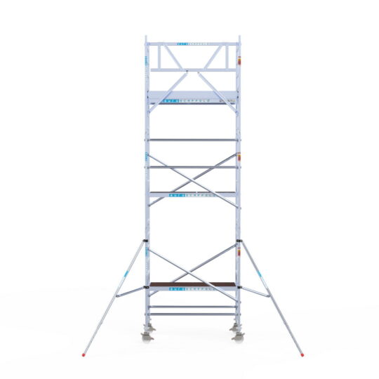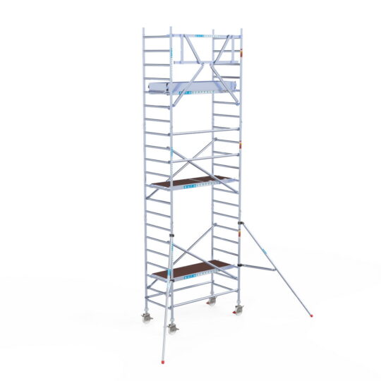 190 cm: Dit is de kleinste standaardmaat voor rolsteigers. Uitzonderingen zijn extra compacte kamersteigers of 1-persoonssteigers, die vaak platformlengtes van 120, 140 of 165 cm hebben. De 190 cm-variant wordt veel gebruikt bij kamersteigers en biedt voldoende ruimte om alleen comfortabel te werken.