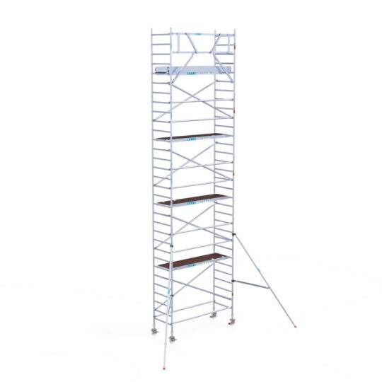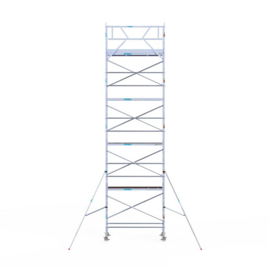 190 cm: Dit is de kleinste standaardmaat voor rolsteigers. Uitzonderingen zijn extra compacte kamersteigers of 1-persoonssteigers, die vaak platformlengtes van 120, 140 of 165 cm hebben. De 190 cm-variant wordt veel gebruikt bij kamersteigers en biedt voldoende ruimte om alleen comfortabel te werken.