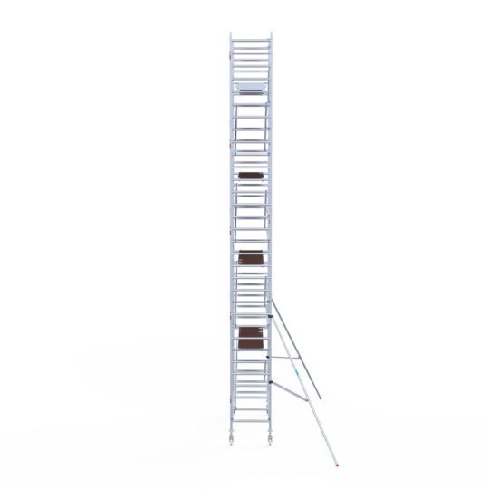 305 cm: Dit is, naast de zeldzame 400 cm-variant, de grootste standaardmaat. Deze lengte is ideaal als je de steiger regelmatig moet verplaatsen, omdat je met een langer platform minder vaak hoeft te herpositioneren. Deze platformlengte is zwaar, wij adviseren hier altijd voor carbon te kiezen.
